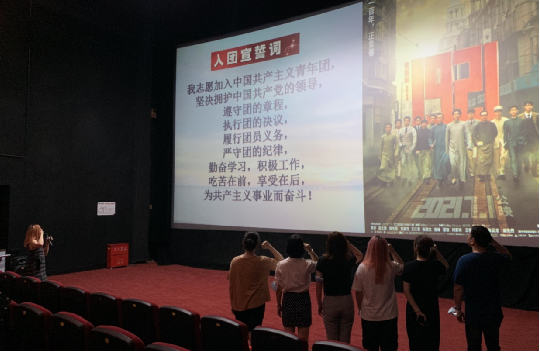 正式觀影前,首先由黨總支委員張淳玨開場致詞,簡單介紹了電影的歷史背景:“1921年,一群年輕人做了一件驚天動地的大事…”建黨100周年,正如影片封面上的那群年輕人,風華正茂正青春!