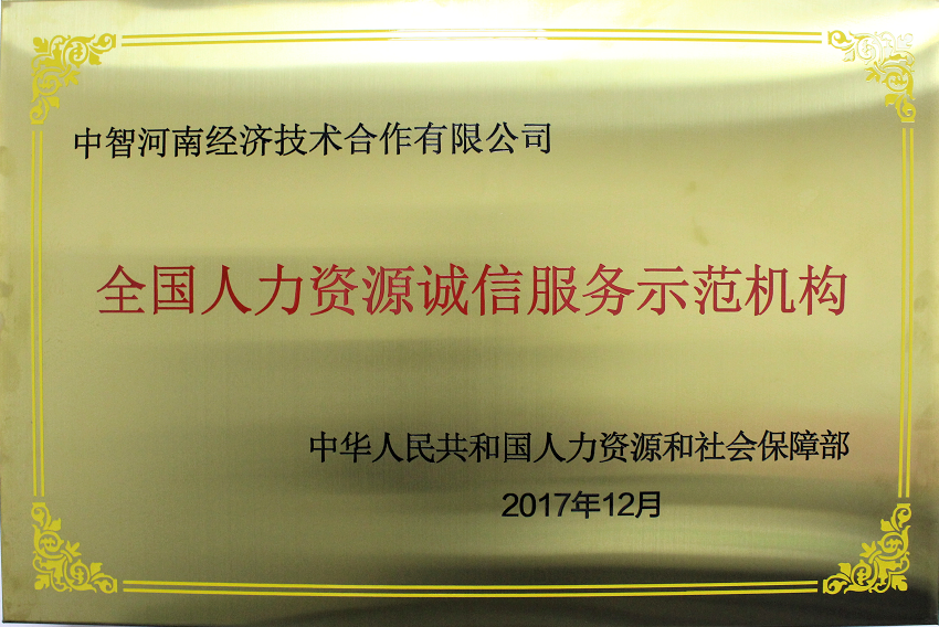 3.中智河南公司榮獲“全國人力資源誠信服務示范機構”稱號