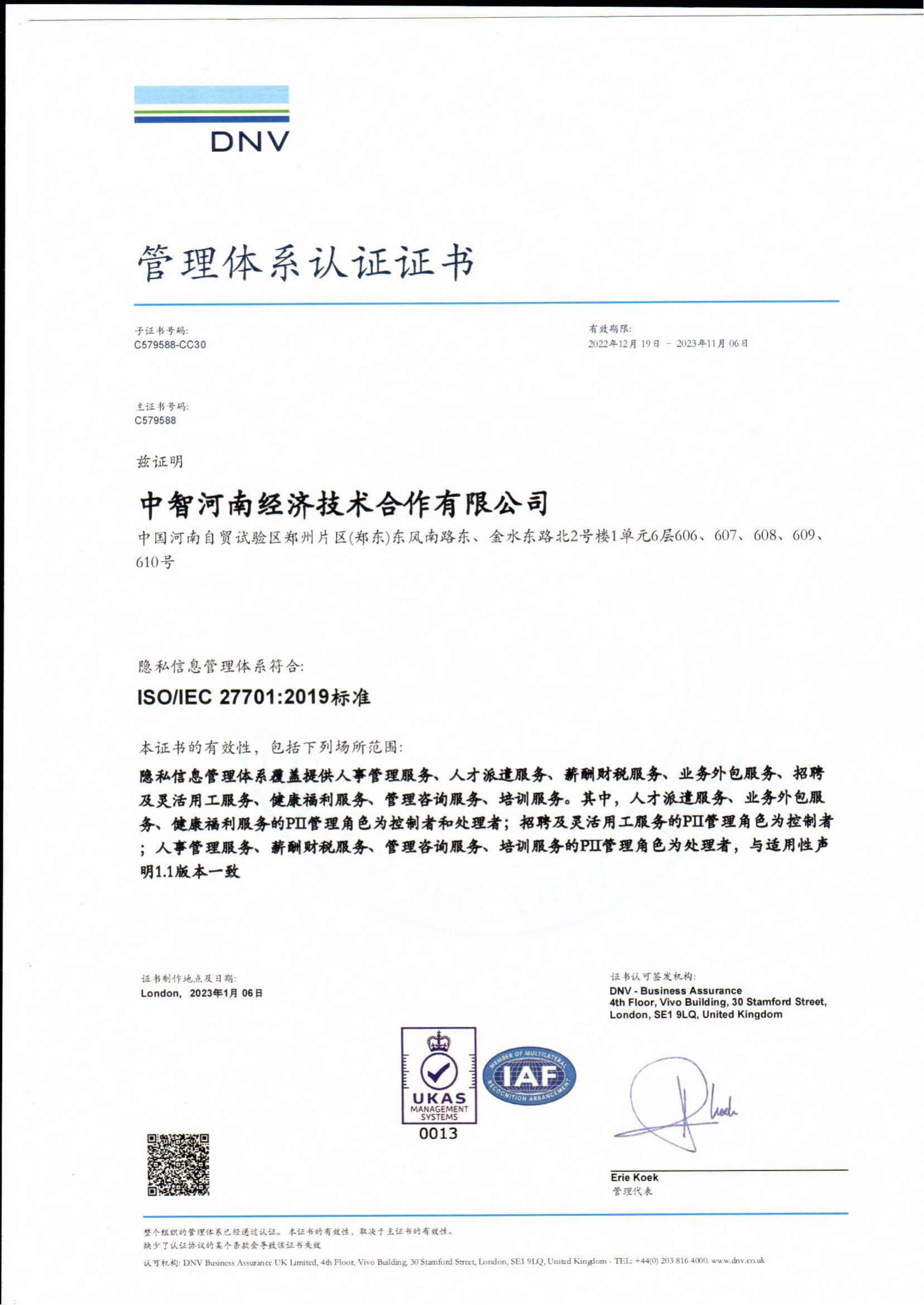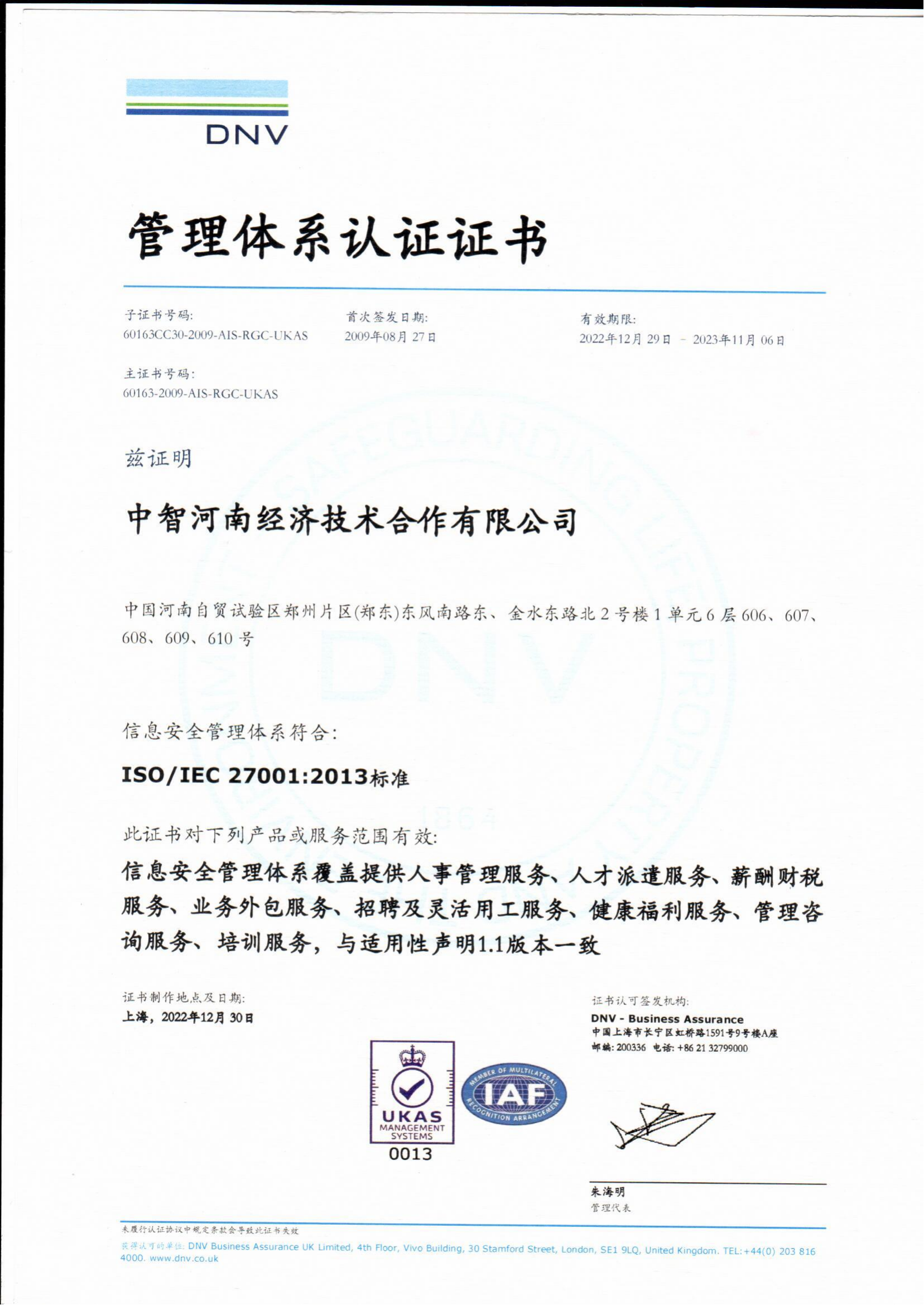 6.中智河南公司榮獲“各項管理體系認證證書”